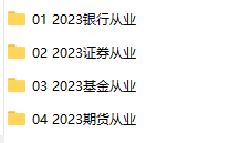 ├──01 2023银行从业 | ├──2023-初级银行从业 | | ├──2023-初级银从-法律法规 | | ├──2023-初级银从-风险管理 | | ├──2023-初级银从-个人贷款 | | ├──2023-初级银从-个人理财 | | ├──2023-初级银从-公司信贷 | | └──2023-初级银从-银行管理 | └──2023-中级银行从业 | | ├──2023-中级银从-法律法规 | | ├──2023-中级银从-风险管理 | | ├──2023-中级银从-个人贷款 | | ├──2023-中级银从-个人理财 | | ├──2023-中级银从-公司信贷 | | └──2023-中级银从-银行管理 ├──02 2023证券从业 | ├──【03】23证券从业 | | ├──法律法规 | | └──基础知识 | ├──【04】23保荐代表人胜任能力 | | ├──【01】教材精讲班-孙婧(更新至249讲) | | ├──【02】真题考点班-孙婧(12讲全) | | ├──【03】专项突破班-孙婧(更新至04讲) | | └──【04】冲刺串讲班-孙婧(14讲) | ├──【05】23证券分析师胜任能力 | | ├──【01】教材精讲班-李泽瑞(76讲全) | | ├──【02】冲刺串讲班-李泽瑞(09讲全) | | ├──【03】计算机专项班-李泽瑞(更新至06讲) | | ├──【04】真题考点班-李泽瑞(13讲讲全) | | └──【05】模考金题班-李泽瑞(02讲) | └──【06】23证券投资顾问胜任能力 | | ├──【01】教材精讲班-李泽瑞(59讲全) | | ├──【02】冲刺串讲班-李泽瑞(09讲全) | | ├──【03】计算机专项班-李泽瑞(更新至06讲) | | ├──【04】真题考点班-李泽瑞(15讲全) | | └──【05】模考金题班-李泽瑞(02讲) ├──03 2023基金从业 | ├──法律法规 | | ├──01-教材精讲班-王佳荣(更新至38讲) | | ├──02-模考金题班-王佳荣(02讲) | | ├──03.《基金法律法规、职业道德与业务规范》冲刺串讲班 | | └──04.《基金法律法规、职业道德与业务规范》真题考点班 | ├──私募股权 | | ├──00、课程导学 | | ├──01.教材精讲班 | | ├──02.冲刺串讲班 | | ├──03.计算题专项班 | | ├──04.真题考点班 | | └──05.《私募股权投资基金基础知识》模考金题班-李楠 | └──证券投资 | | ├──00.备考指导 | | ├──01.教材精讲班 | | ├──02.冲刺串讲班 | | ├──03.真题考点班 | | ├──04.计算题专项班 | | ├──05.《证券投资基金基础知识》模考金题班 | | └──2022-基金从业-证券投资基金基础知识-三色笔记.pdf 3.28M └──04 2023期货从业 | ├──2023-期货从业-法律法规 | | ├──00.备考指引 | | ├──01.教材精讲班 | | ├──02.冲刺串讲班 | | ├──03.真题考点班 | | └──04.模考金题班 | ├──2023-期货从业-基础知识 | | ├──00.备考指引 | | ├──01.教材精讲班 | | ├──02.冲刺串讲班 | | ├──03.计算题专项突破班 | | ├──04.模考金题班 | | └──05.真题考点班 | └──2023-期货从业-投资分析 | | ├──01.教材精讲班 | | ├──02.冲刺串讲班 | | ├──03.真题考点班 | | ├──04.专项突破班(计算题专题) | | ├──05.模考金题班 | | ├──《期货投资分析》模考金题班-李泽瑞.pdf 878.12kb | | └──《期货投资分析》专项班(计算题专题)-李泽瑞.pdf 1.59M
