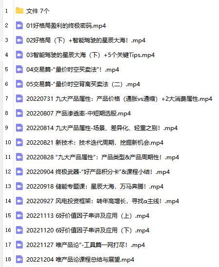 最后更新时间: 2022/12/14 11:32:57 更新到:20221204 唯产品论课程总结与展望.mp4 265.94M